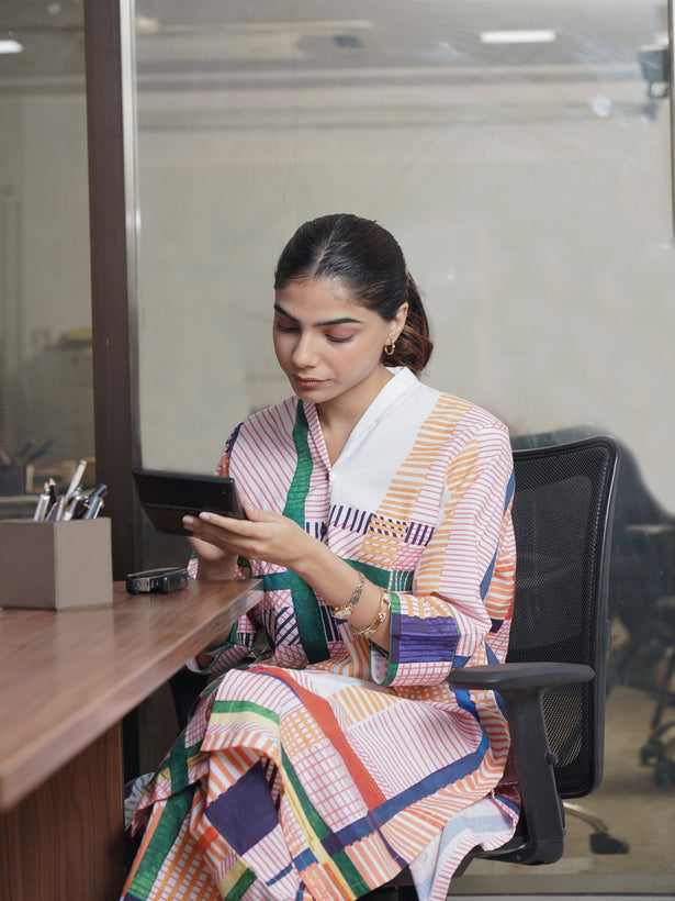 Get Ready To Make A Stylish Statement With The Mahnoor Coord Set! This Playful And Versatile Set Features A Multicolor Design, Perfect For Adding A Pop Of Color To Your Wardrobe. Made From Pure Cotton, It Offers Both Comfort And Style For Any Occasion. Upgrade Your Fashion Game With Mahnoor!